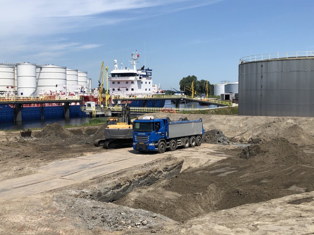 - toepassen van 260 m1 damwand om direct langs de petroleumhaven te kunnen graven;