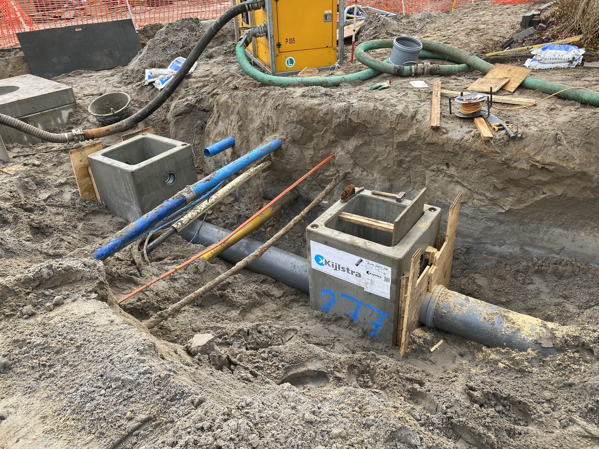 - Aanbrengen 5.850 m1 PVC hoofdriool en 6.380 m1 PVC huisaansluitingen;